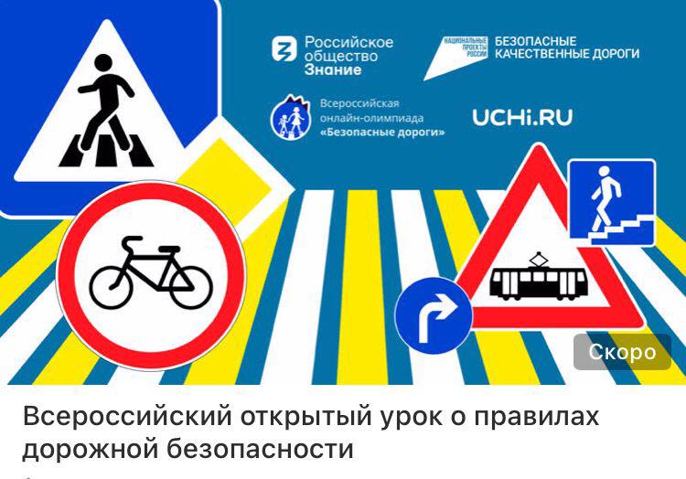 Урок пройдет в преддверии Олимпиады «Безопасные дороги», а также Всероссийской недели безопасности дорожного движения при поддержке национального проекта «Безопасные качественные дороги».