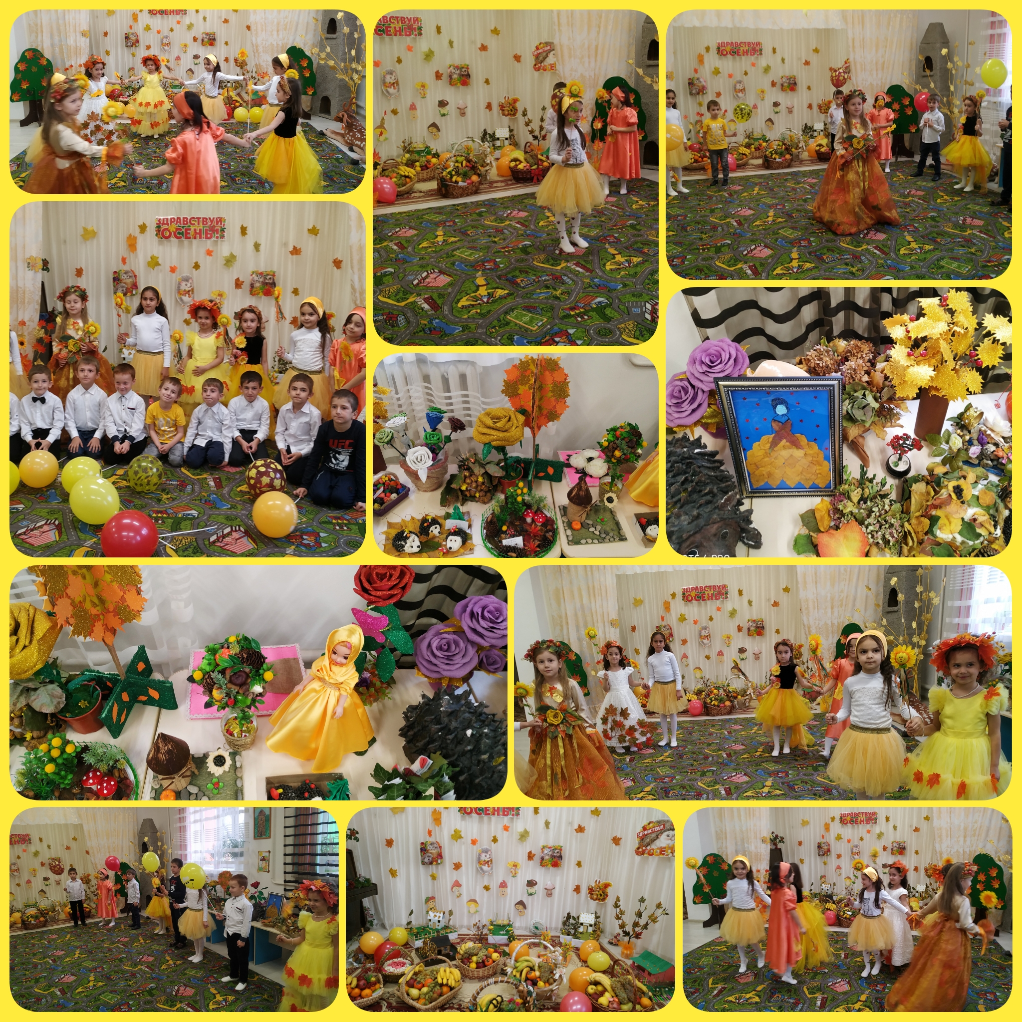 11.11.202011 ноября в нашем саду было проведено праздничное мероприятие «Золотая осень!». Целью данного мероприятия являлась: закрепить знания детей о сезонных явлениях, о дарах осени; формировать коммуникативные навыки. На праздничном мероприятии дети пели песни, рассказывали стихи,танцевали,отгадывали загадки на осеннюю тематику.