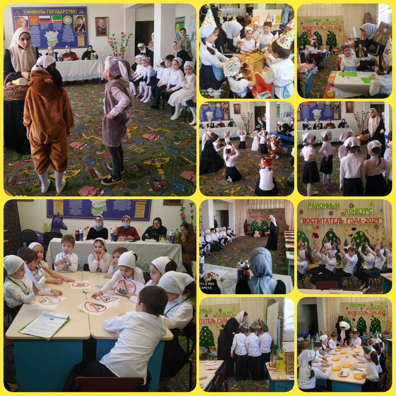 10.02.202110.02.2021г. на базе "Детский сад √1"Сказка" с.Ачхой- Мартан" прошел районный конкурс "Воспитатель года -2021". Участие в нем приняли пять творческих, разноплановых педагогических работников. Атмосфера в зале была деловая и в то же время праздничная. Чувствовалось волнение участниц". Конкурсантам предстояло выступить с визитной карточкой и показать педагогическое мероприятие с детьми, демонстрируя свой практический опыт. ООД, проведенные с детьми воспитателями, были интересными и познавательными. У всех воспитателей присутствовала отличительная черта педагога-любовь к детям, умение быть с ними на равных.
