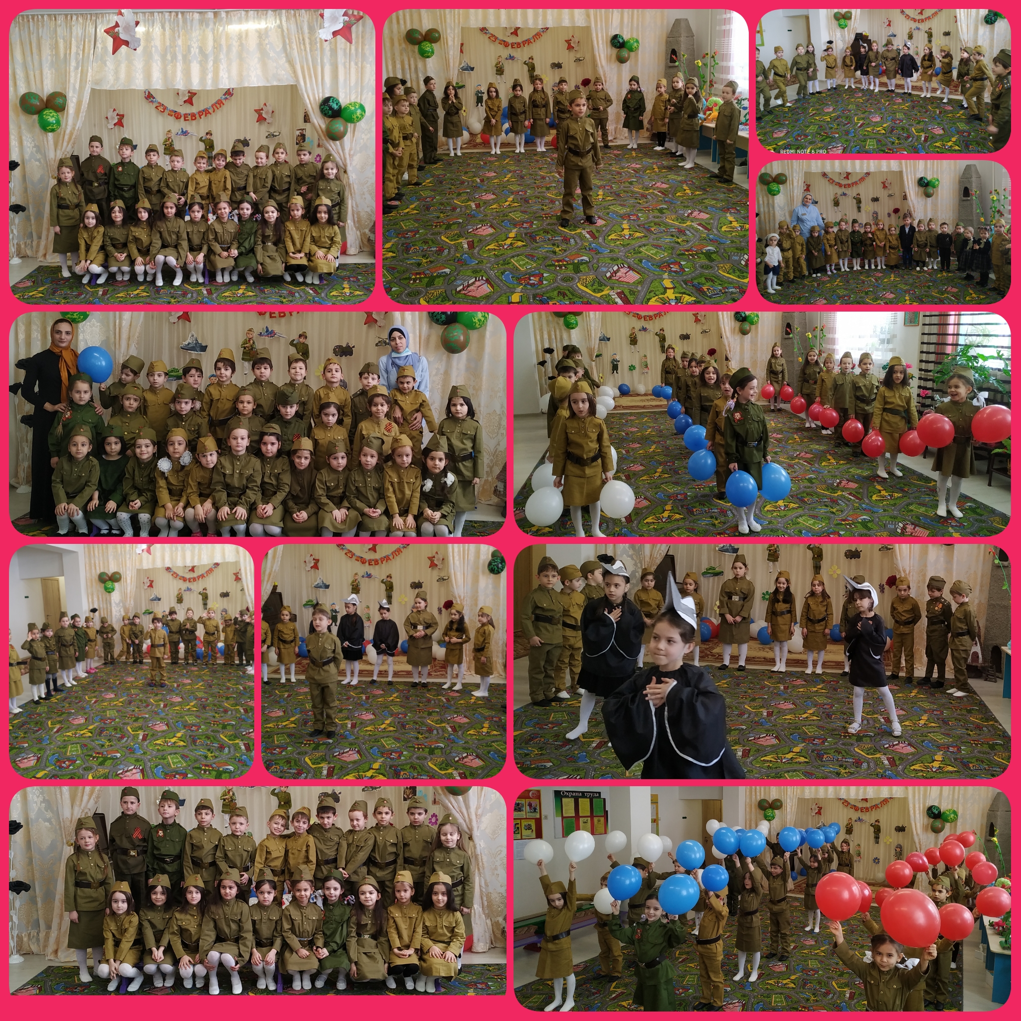 В преддверии праздника в ДОУ была проведена тематическая неделя, на которой педагоги рассказывали детям, что такое смелость и отвага, боевая выручка, давали различные знания об истории России и Чеченской республики, о защитниках Родины. Воспитанники разучивали стихи и танцы, посвященные празднику, готовили своими руками подарки папам и дедушкам, оформляли праздничные стенды с фотографиями своих родных.