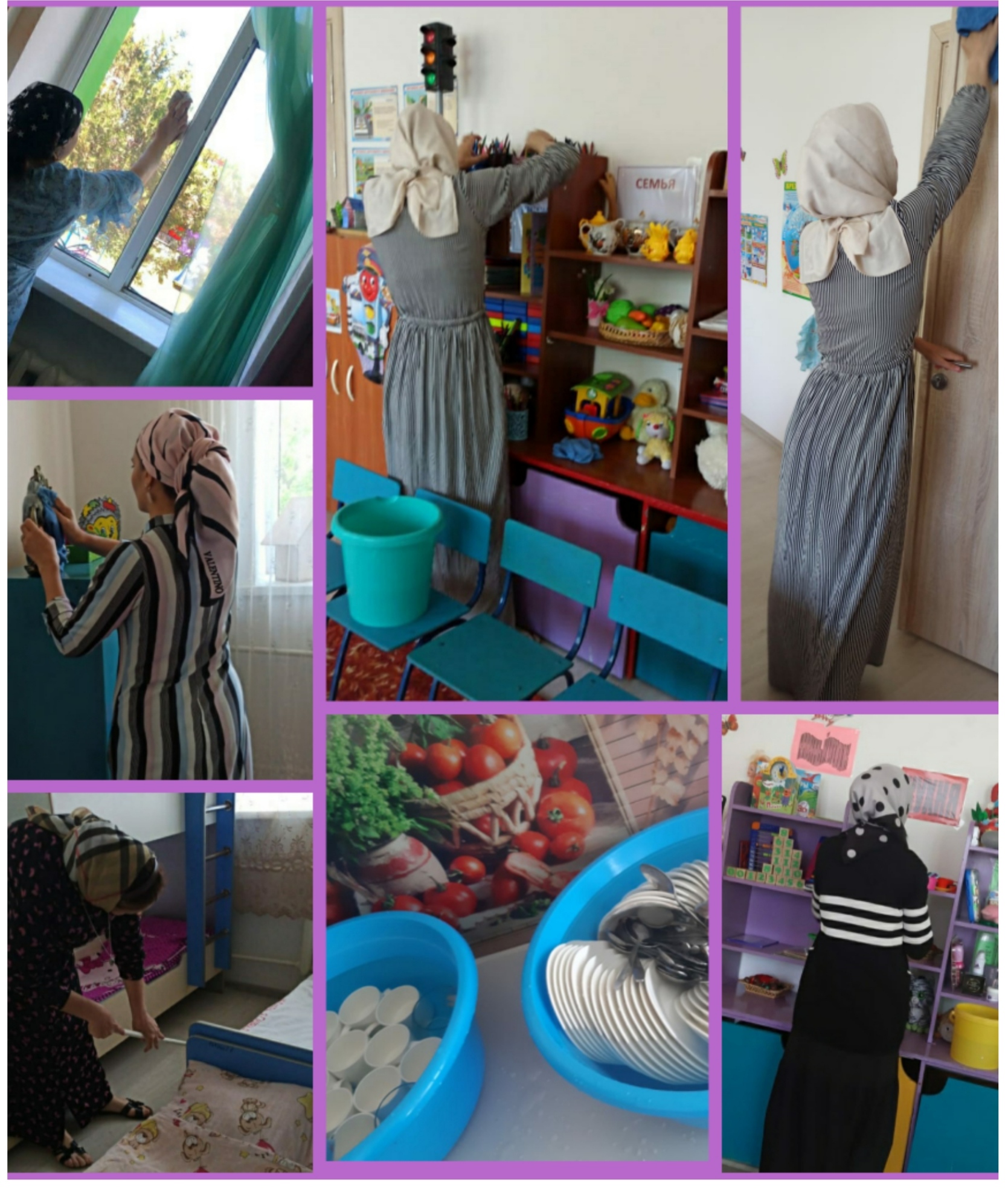 08.05.20218 мая, в преддверии праздника Ид-аль-Фитр,наш коллектив провел субботник. Целью субботника было проведение в надлежащее состояние помещений детского сада,участков и прилегающей территории.Сотрудниками детскоко сада была проведена дезинфекция помещений,инвентаря,мебели, игрушек,посуды.На участке были побелены деревья,бардюры.