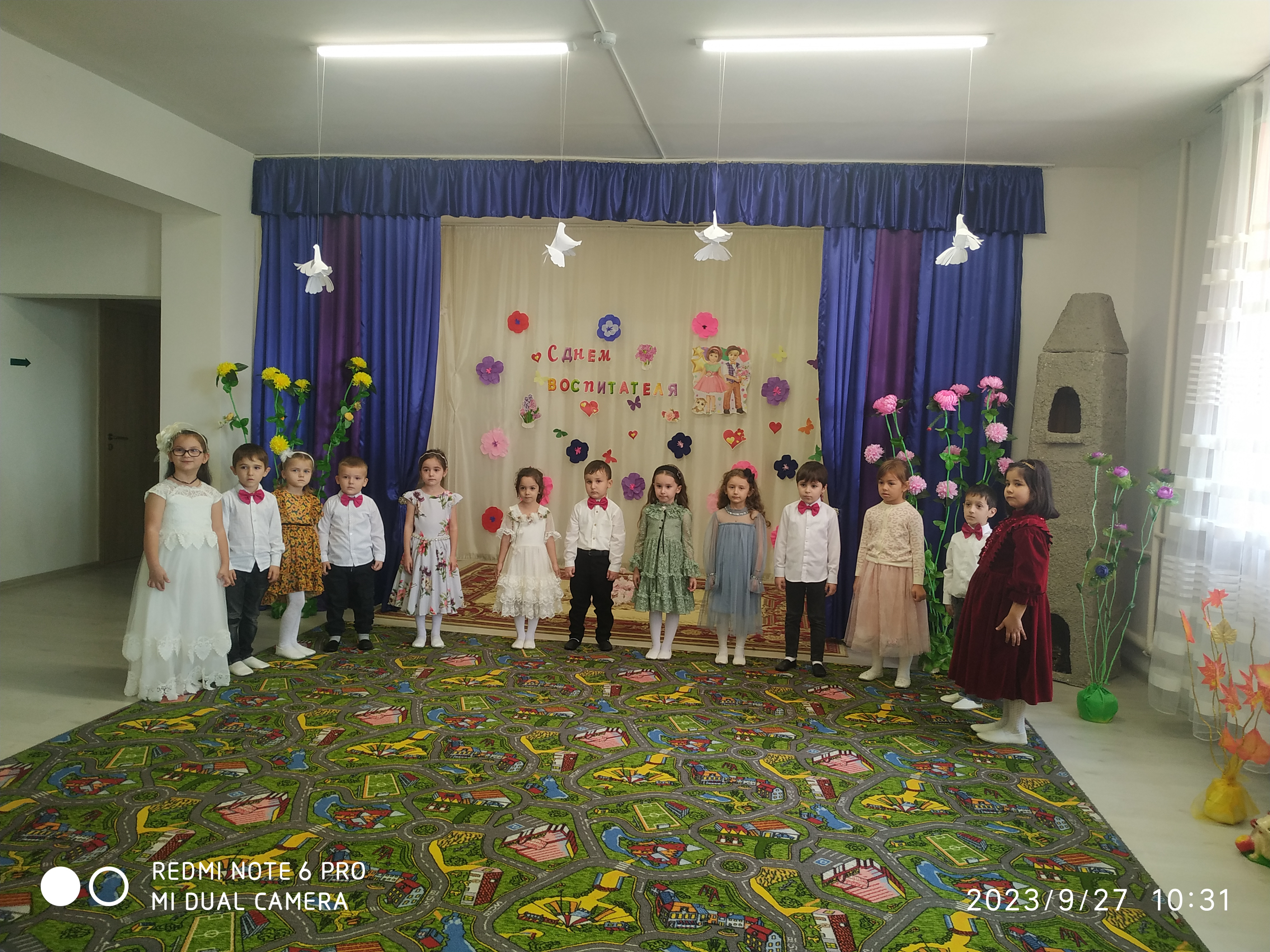 27 сентября мы отпраздновали свой профессиональный праздник «День дошкольного работника». Профессия воспитателя и всех работников дошкольных учреждений требует от человека глубокой самоотдачи, огромного терпения и бесконечной любви к своему делу. Воспитание наших детей в начале их жизненного пути - не простая задача, но от её успешного решения зависит будущее нашей страны. Надеемся, что то зерно, которое закладывается в малышей с самого детства, обязательно прорастёт, и послужит нам опорой и основанием в дальнейшей жизни. Быть воспитателем - высокое призвание и глубокое уважение. От профессионализма, терпения и мудрости наших педагогов, внимания к уникальному и своеобразному внутреннему миру ребенка, зависит то, самое дорогое, что у нас есть - наша жизнь и наша надежда.Мы в нашем любим детском саду отметили этот праздник душевным концертом. Дети с педагогами подготовили музыкальные номера, стихи и сценки на тему «детский сад». Концерт прошел в легкой и непринужденной обстановке. В завершении дети пожелали всем сотрудникам здоровья и крепких нервов, хороших зарплат и побольше приятных моментов!