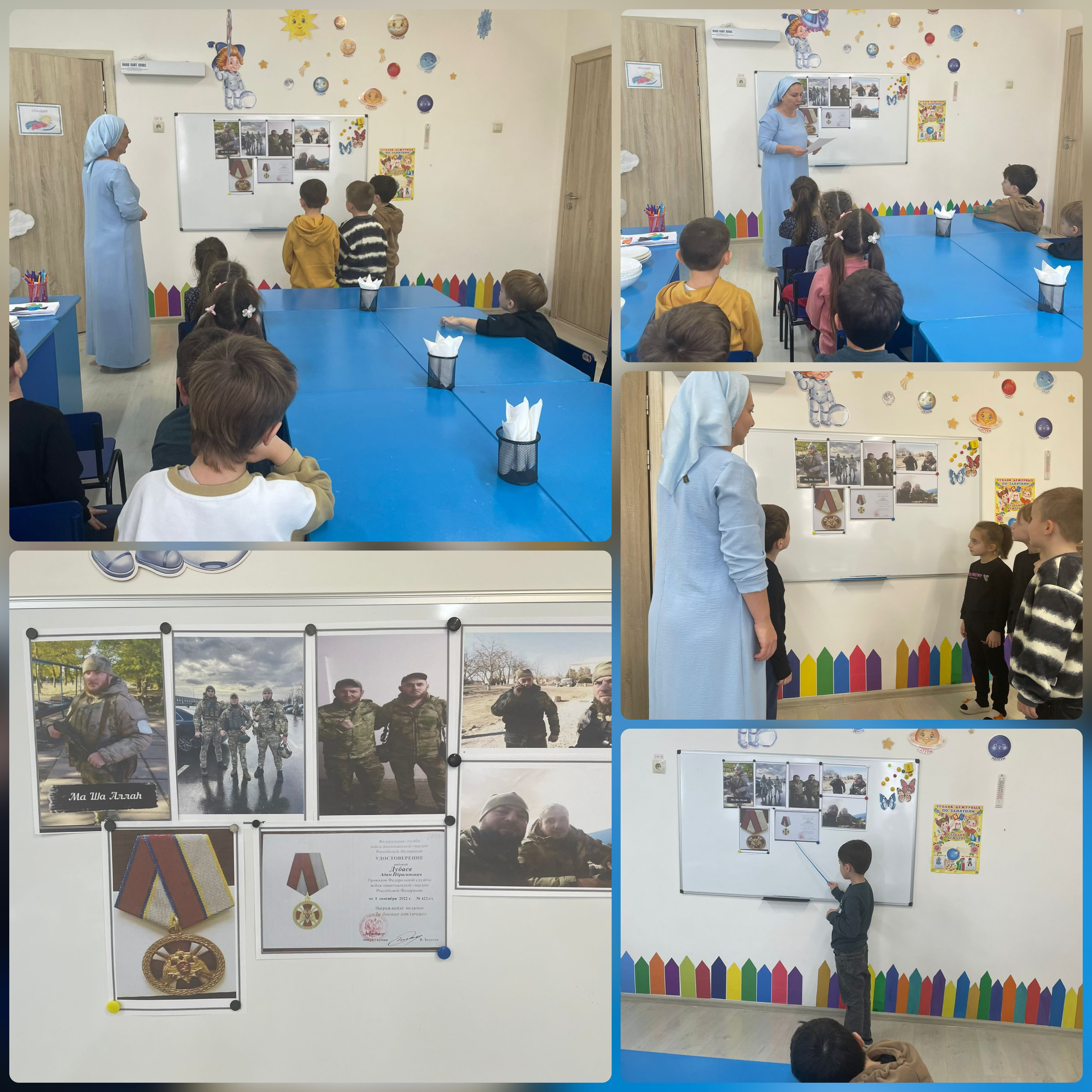 Воспитатели рассказали детям, что такое СВО, познакомили с понятиями «герой», «героический поступок», рассказали о героях специальной военной операции. Ребята приняли активное участие в беседе и пришли к выводу: поступок, совершенный с добрым умыслом и во имя благой цели, можно назвать героическим. А между тем, когда герой совершает поступок, он не думает о своем героизме, и том, что он совершает геройский поступок. Он просто приходит на помощь людям.
