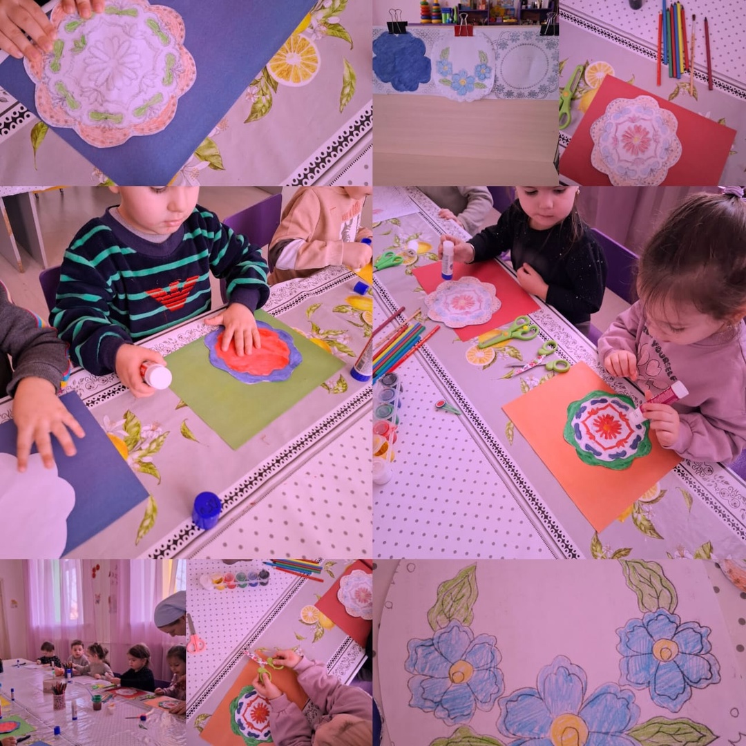 Занятие.Аппликация.Тема:Красивая салфетка.Цель:учить составлять узор на бумаге квадратной формы,распологая по углам и в середине большие кружки одного цвета,а в середине каждой стороны - маленькие кружки другого цвета.